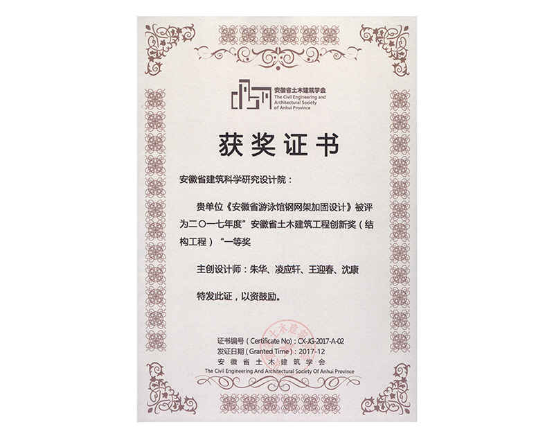 2017年度安徽省土木建筑工程创新一等奖(结构工程)