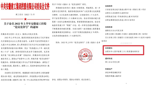 近日,从集团传来喜讯,我院合肥市中心图书馆第三方工程质量检测项目被安徽建工控股党委授予“党员先锋号”称号。
