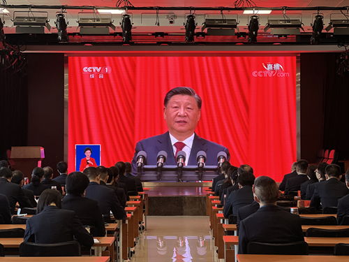 为响应疫情防控要求,各党支部(总支)、各部门(单位)灵活组织党员职工集中或居家收听收看实况直播。