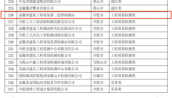 近日,省住房和城乡建设厅公布“2021年度安徽省优秀建筑业企业”名单,二站喜获建筑工程-工程质量检测类“2021年度安徽省优秀建筑业企业”称号。
