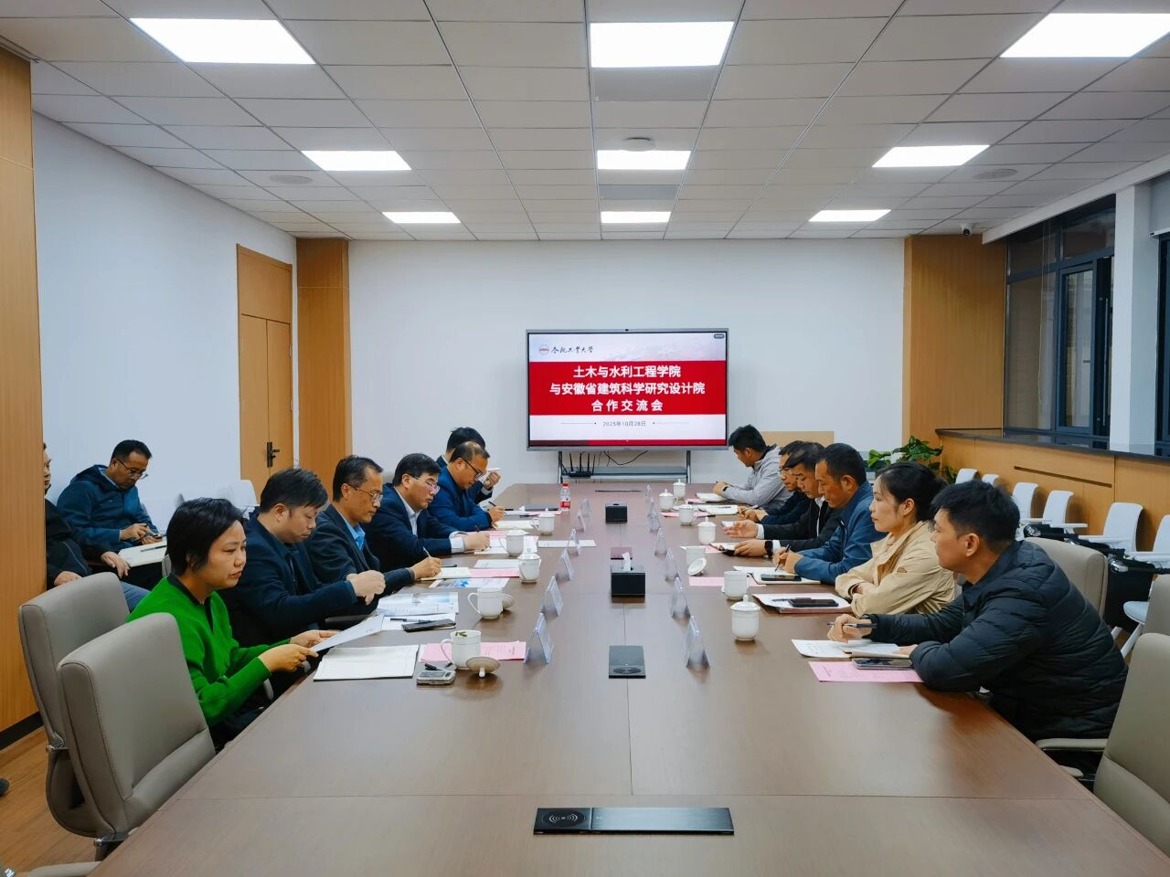 10月28日下午,安徽省建科院党委副书记、院长刘春雷率队拜访合肥工业大学土木与水利工程学院,学院院长王静峰热情接待并举行工作会谈。