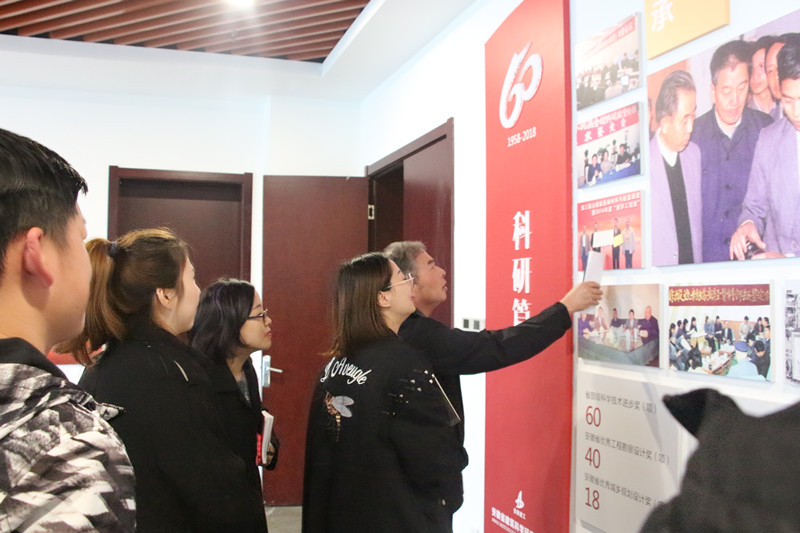 座谈会后,团委副书记胡婷婷带领各支部代表齐聚二楼展厅,集体参观了建院六十周年图片展。物管中心主任张强逐个展板为大家耐心讲解,从主题形象篇、科研篇到发展篇、奋进篇等,进一步增强了大家对建院六十年来发展的认知。看着展板,听着讲解,一颗颗更努力的种子在团员青年们心中萌发。