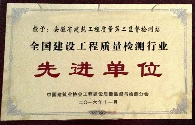 安徽省建筑工程质量第二监督检测站荣获“全国工程质量检测行业先进单位”