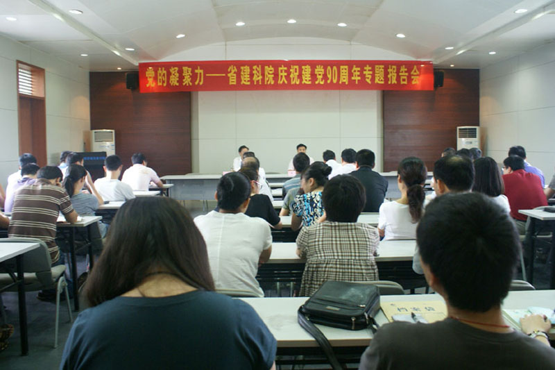 为庆祝中国共产党建党90周年,6月24日,我院在四楼大会议室举办了庆祝建党90周年专题报告会,安徽省委宣传部宣教处李涛处长应邀到会作题为《党的凝聚力》的专题报告。会议由院党委书记周文华主持,全院党员及管理层全体员工参加了会议。