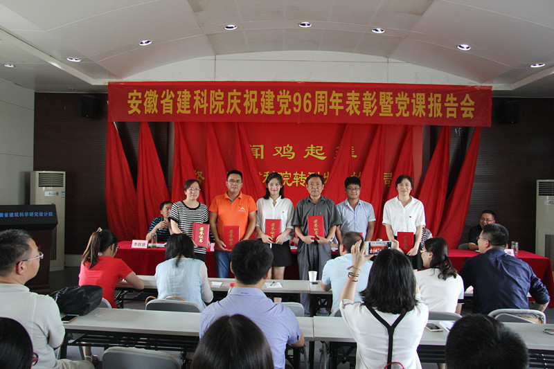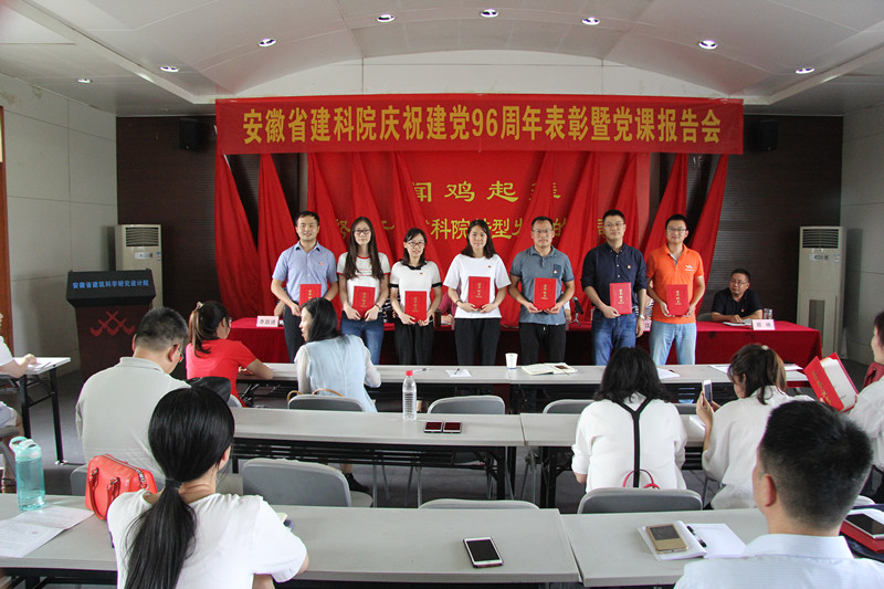 会上,调研员周湃宣读了安徽省建科院“七一”表彰决定,与会领导分别为先进党支部、优秀共产党员、优秀党务工作者和党员示范岗代表颁奖,计建华、姚传山、王修本、周沫、陶源、李倩等6位受表彰代表分别结合自身思想和工作实际作了交流发言。
