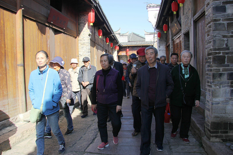 午饭后,大家驱车前往桐城千年古镇——孔城镇,置身于孔城老街,在小桥、流水、人家、古屋、老街、弄堂,鳞次栉比的黛瓦、错落有致的砖墙,古朴美观的门洞,雕工精美的窗棂,风雅别致的茶馆楼阁中,老同志们三五成群,且行且看,共同品位孔城,感受千年古镇的秀美神韵。