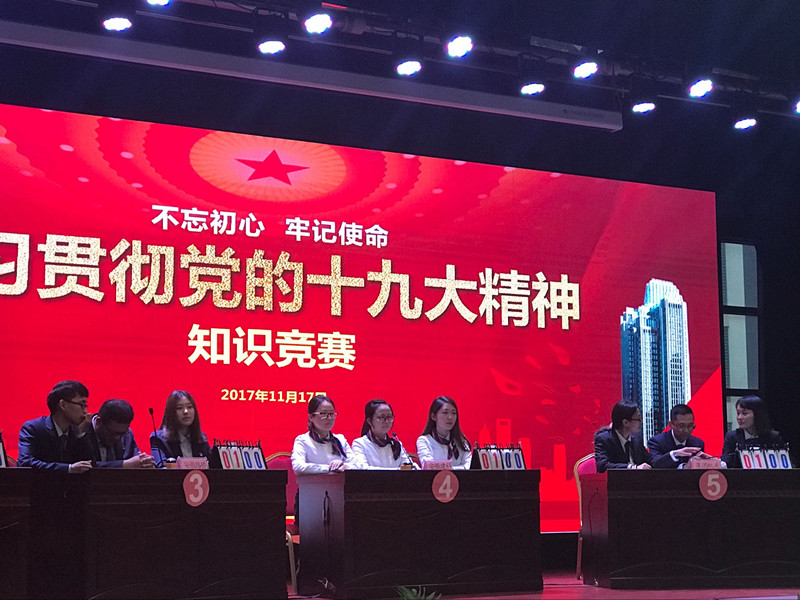 本次比赛以《党的十九大报告》、《中国共产党党章》为主要内容,设个人必答题、小组必答题、抢答题及风险选择题四种题型,分三场预赛和一场决赛。竞赛中,各代表队精神抖擞,信心百倍,精彩的表现赢得了台下观众的阵阵掌声。经过激烈角逐,我院代表队沉着冷静,奋力拼搏,最终取得了三等奖的优异成绩。