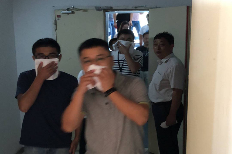 会上,蜀山消防大队教官为大家详细讲解了高层消防安全知识及各类灭火器材使用方法,并通报了近期发生的重大火灾等情况。随后,组织建科大厦全体人员开展了火灾应急疏散演练。15:20分,消防控制室值班员接到消控主机显示12层南侧走廊感烟报警,楼层巡岗员查看现场情况后,立即向上级请求启动火灾应急预案。院党委委员、副院长、此次演练总指挥李跃进下达指令,启动火灾应急预案,宣布疏散命令。疏散现场,各层人员在本楼层安全员指挥引导下,用湿毛巾捂住口鼻、蹲姿靠右从两侧消防楼梯有序撤离到建科大厦北广场疏散现场。演练过程中,指挥人员沉着冷静,广大员工反应迅速;在场的398名人员全部安全撤离,圆满的完成了预定演练。