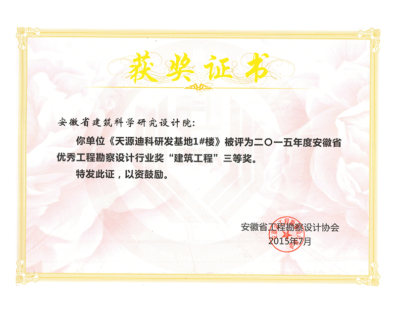 2015年度安徽省优秀工程勘察设计三等奖(建筑工程)