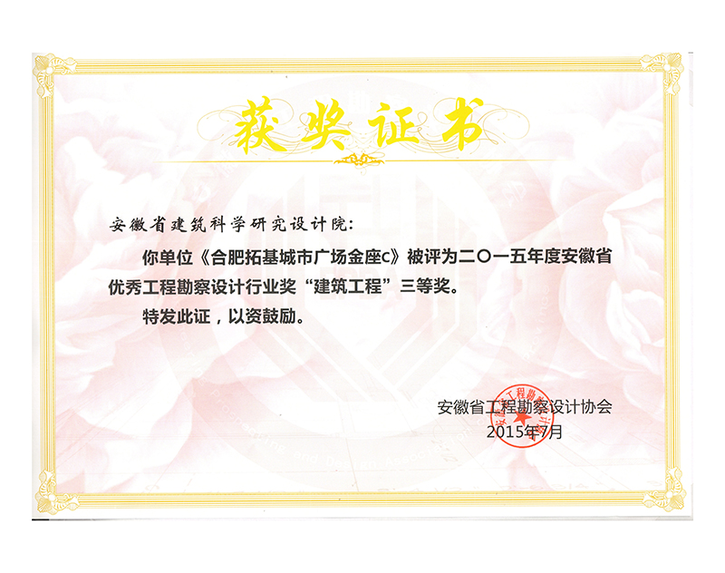 2015年度安徽省优秀工程勘察设计三等奖(建筑工程)