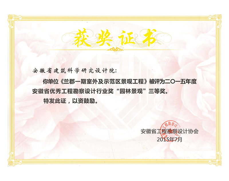 2015年度安徽省优秀工程勘察设计三等奖(园林景观)