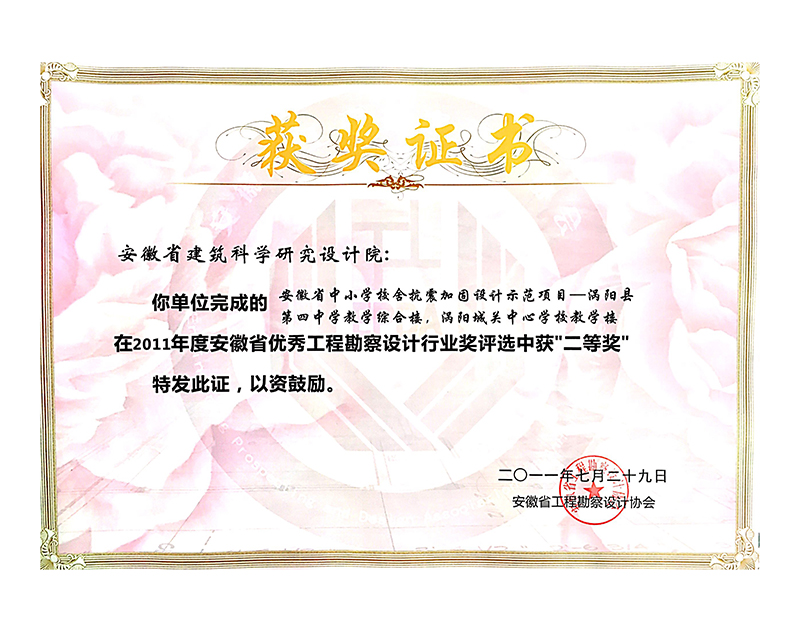 2011年度安徽省优秀工程勘察设计二等奖(建筑结构)