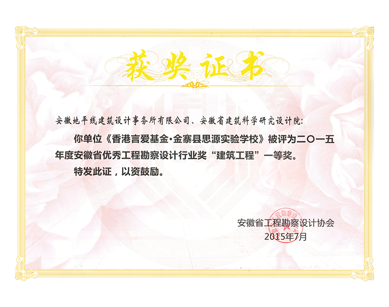 2015年度安徽省优秀工程勘察设计一等奖(建筑工程)
