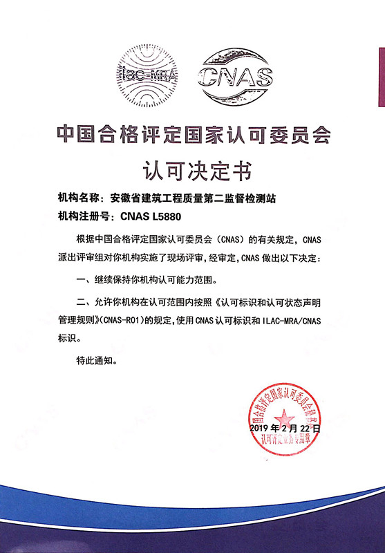 近日,收到中国合格评定国家认可委员会(CNAS)秘书处通知,二站实验室通过2018年度CNAS实验室专项监督评审,再次获取中国合格评定国家认可委员会认可决定书。