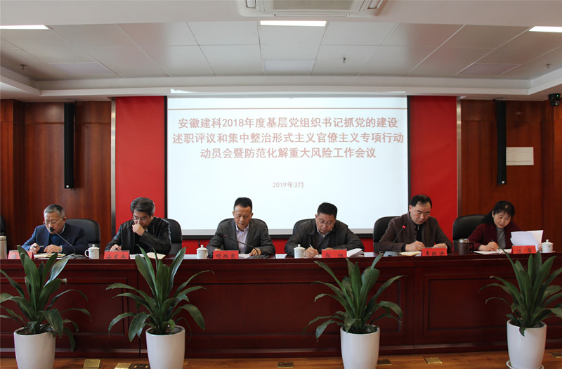 3月14日上午,院党委组织召开2018年度基层党组织书记抓党的建设述职评议和集中整治形式主义官僚主义专项行动推进会暨防范化解重大风险工作会议。院领导班子,各党支部相关人员,来自管理、设计、检测和实体部门的中层近60人参加会议。会议由副院长李跃进主持。