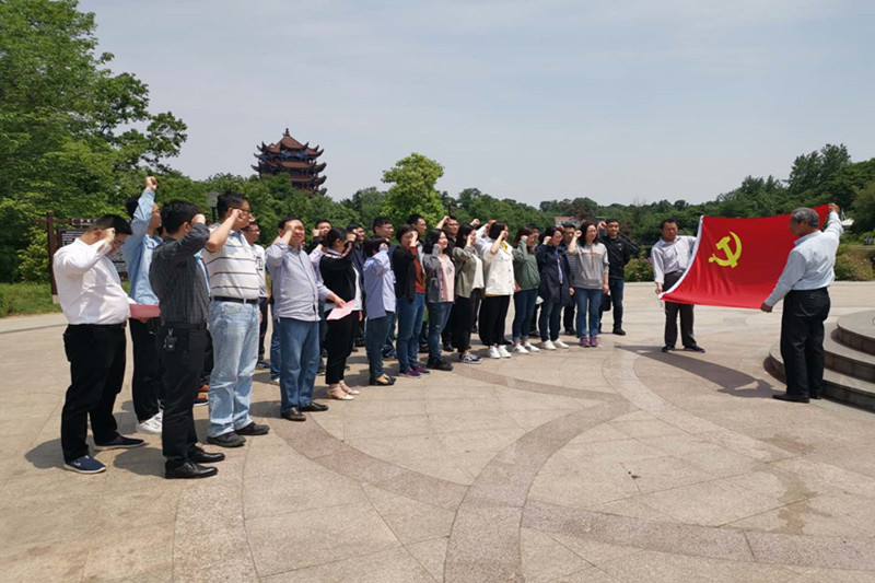 上午,党员同志们踏着革命先辈的奋斗足迹,在讲解员的解说下,先后参观了许继慎纪念馆和苏家埠战役纪念馆,瞻仰了革命先烈徐向前纪念像。期间,大家驻足细观遗物、书籍、照片等珍贵史料,大量珍贵的史料再现了解放战争时期革命先辈英勇顽强的战斗史,让大家重温了昔日那段波澜壮阔的革命历程,感受了先辈们艰苦奋斗与无私奉献的革命精神。随后,在革命先烈徐向前纪念像前,检测支部书记姚传山带领全体党员面对鲜红的党旗,举起右手,庄严宣誓,铿锵有力的宣誓声回荡在空中,表达了全体党员“不忘初心、牢记使命”的政治信念和坚定决心。