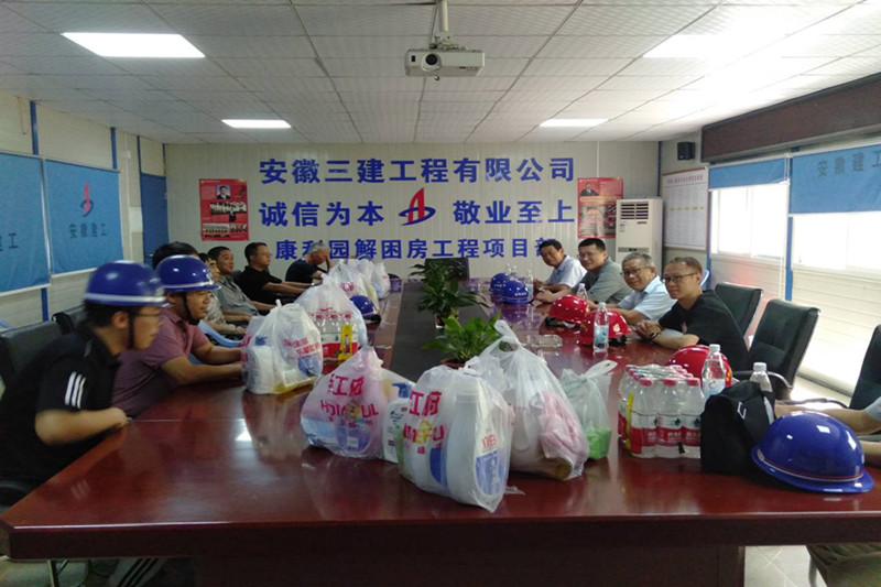七月中旬以来,正值建筑施工生产旺季,气温节节攀升,8月2日,院纪委书记、工会主席程钢,工会副主席张强,生产安全部副主任陈鹏飞及相关单位负责人分别到监理公司所属康利园解困房项目、特技公司所属惠民新村19号楼项目、结构四所所属合肥恒信巨星(奔驰)4s店、奥迪4s店项目、轨道交通室的kp1地块48班小学、10班幼儿园项目,代表院党委和工会为冒酷暑、顶烈日战斗在作业的员工送去清凉油、风油精、洗衣液、毛巾、矿泉水等防暑降温药品和生活用品。