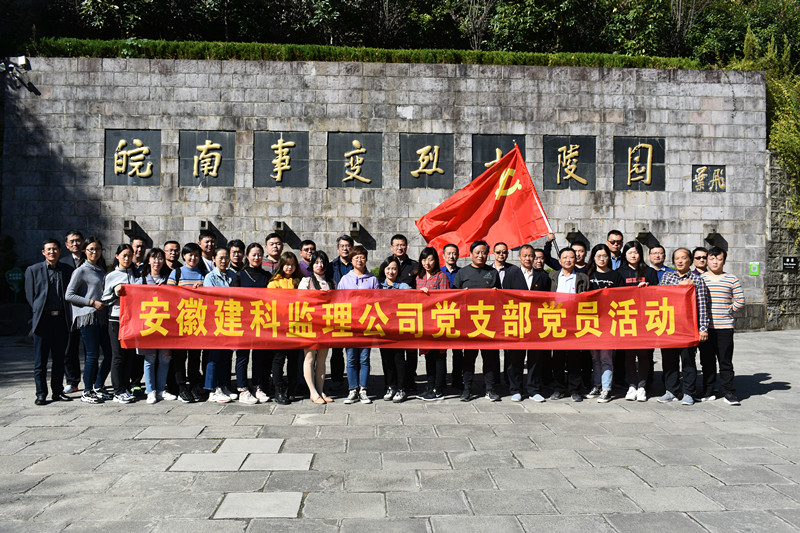 为庆祝新中国成立70周年,深入贯彻落实党的十九届四中全会精神,进一步激发广大党员和入党积极分子的爱国热情,11月15日-16日,建科监理公司组织全体党员、入党积极分子等39人赴安徽泾县开展革命传统教育,缅怀革命先烈,重温入党誓词。