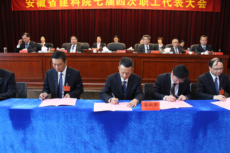 大会号召全体职工要更加紧密团结在以习近平同志为核心的党中央周围,高举新时代中国特色社会主义思想伟大旗帜,在安徽建工集团党委的坚强领导下,以踏石留印的劲头和矢志不渝的韧性,勇立潮头、锐意进取,认真贯彻落实建工集团一届七次职代会及院七届四次职代会精神,全面完成年度各项目标任务,为实现“十三五”规划圆满收官、开创安徽建科转型发展新局面而努力奋斗!