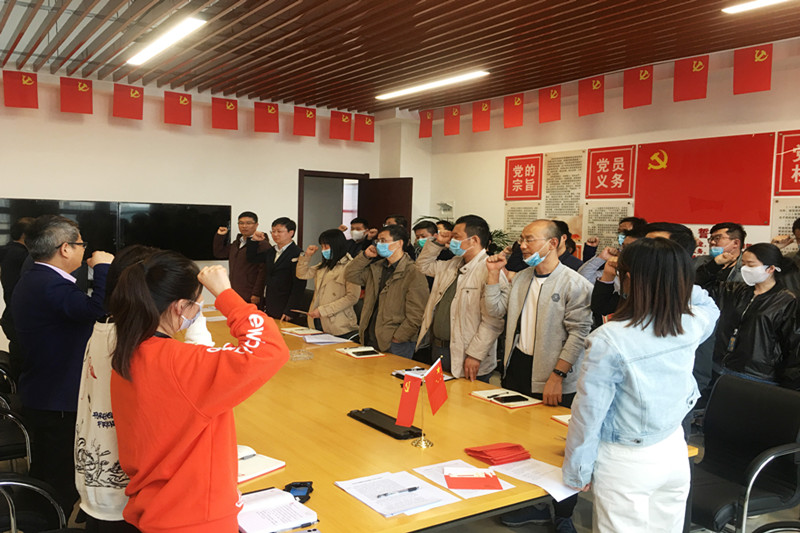 重温一次誓词 在组织委员兼纪检委员缪娟娟的带领下,在场全体党员举起右手握拳过肩,重温入党誓词,重忆入党初心,浓浓的政治仪式感增强了党员的荣誉感、责任感和使命感。