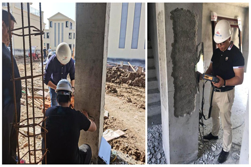 为切实做好此次检查工作,院、站领导高度重视,精心部署,迅速成立由二站结构二所室主任董军牵头,道桥所、节能所专业检测人组成的8人质量检测团队,立即奔赴现场,积极配合检查组,充分发挥自身专业优势,重点对该项目主体结构质量、小区道路、节能保温材料等进行了深入细致地检测。