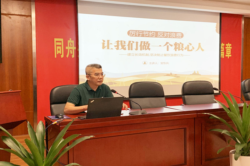 会上,安院长结合个人近期参加安徽建工集团学习贯彻习近平总书记考察安徽和在合肥主持召开扎实推进长三角一体化发展座谈会重要讲话精神专题培训班的学习心得体会,作了题为《厉行节约、反对浪费——让我们做一个粮心人 》的党课报告。安院长从“守自觉之心,节约粮食”、“怀危机意识,保大国粮仓”、“筑长效机制,杜绝舌尖上的浪费 ”和“兴节约之风,宣传传统美德”四个方面,为支部党员上了一堂主题鲜明、意义深刻、紧跟时政的主题党课。