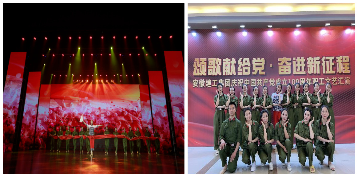 舞动红心 向党献礼。为庆祝中国共产党成立100周年,根据集团公司《关于开展“百年礼赞 红心向党”献礼建党百年系列庆祝活动的通知》安排,安徽建科工会组织人员参加集团公司举办的“颂歌献给党 奋进新征程”安徽建工集团庆祝中国共产党成立100周年职工文艺汇演。我院选送的舞蹈《映山红》,展现了中国共产党人百年接续奋斗,团结带领人民开辟伟大道路、建立伟大功业、铸就伟大精神。