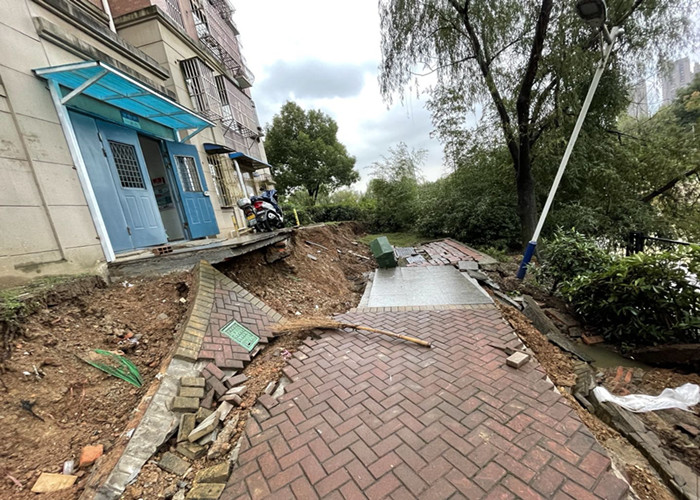 10月14日晚,因受连日持续降雨影响,六安市水云涧名居小区C组20号楼北沿次道与水上公园施工接壤处护坡发生塌方。为迅速掌握楼宇安全状况及塌方原因,市、区、街领导及相关部门高度重视,于10月15日委托二站结构三所负责对六安市水云涧名居C组团20#楼北侧护坡及路面坍塌进行检测、监测、鉴定。