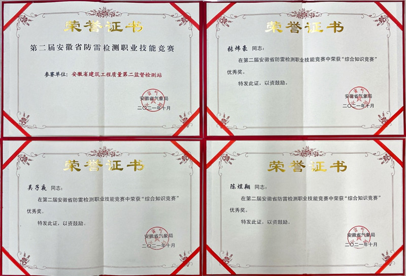 近日,二站特检所参加了由安徽省气象局、省总工会、省人社厅联合举办的第二届安徽省防雷检测职业技能竞赛。此次竞赛行业关注度高,影响力大,来自全省40家单位共计120名选手报名参加本届竞赛。