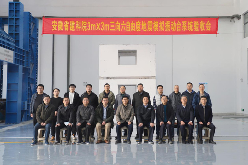 会上,我院及供货商分别汇报了设备供货及验收情况,验收专家组审阅相关资料,并现场查看设备组件及设备运行情况,经充分质询与讨论,验收专家组一致认为安徽省建筑科学研究设计院采购的3m×3m三向六自由度地震模拟振动台系统,系统组成完整,技术资料齐全、系统技术性能参数符合验收要求,同意通过验收,并对系统后续检定校准及使用管理等提出建议。