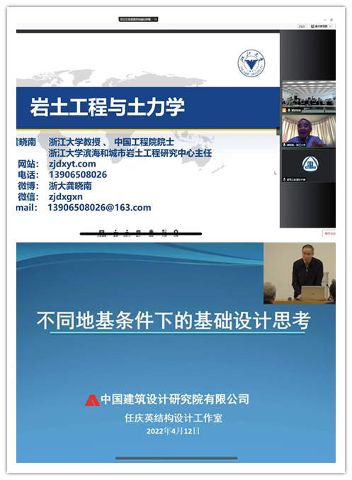 本次线上专题学术活动由建研地基基础工程有限责任公司主办,邀请了中国工程院院士龚晓南和全国工程勘察设计大师任庆英两位地基专家做特邀报告。龚晓南院士介绍了土力学和岩土工程技术发展的来龙去脉,阐述了土力学和岩土工程领域中的重要理论,强调了力学在岩土工程中的重要性,对岩土工程未来的发展态势进行展望,并建议要将理论研究与工程实际紧密结合。任庆英大师结合北京冬奥会延庆赛区国家高山滑雪中心竞赛场馆、南京青奥中心大厦、海南国际会展中心等典型重大工程案例,剖析了地基问题对建筑物基础、主体结构的影响,以实际经验总结了对地基基础设计的体会与感悟。