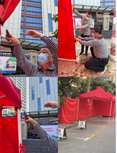 ▲为保障疫情期间的经营工作,物管中心连夜在园区入口处搭建了临时经营接待点。