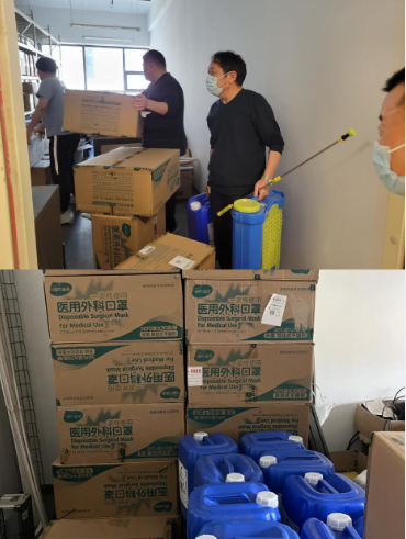 ▲物管中心多渠道储备防疫物资,全力保障疫情防控需求,物资定期发放到所有员工手上。