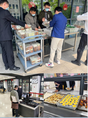 物管中心联合食堂团膳公司准备了外带盒饭,减少人员聚集风险。