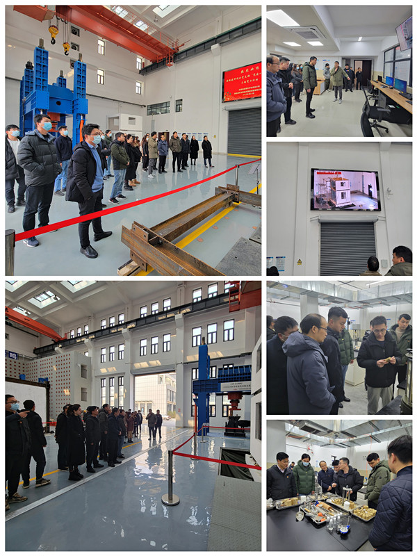 在重点实验室科研团队的讲解、带领下,党员们有序参观了重点实验室结构与抗震实验室、岩土与地下空间实验室、绿色建材与建筑节能实验室等重点实验室,了解了3m×3m三向六自由度地震模拟振动台系统、多通道电液伺服加载系统、10000kN多功能结构试验系统等代表性大型仪器设备的试验功能,并对实验室正在开展的国家自然科学基金面上项目“中空内模墙板-钢框架结构体系拟静力抗震试验”关键技术要点进行了深入交流。
