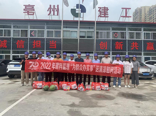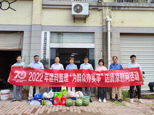 炎炎夏日送清凉,丝丝关怀沁人心。连日来,合肥及整个安徽地区持续高温天气,多地最高气温已超38℃,为进一步关心和关爱烈日下接受“烤”验的一线员工,落实集团和建科院“为群众办实事”工作部署,同时也做好疫情防控常态化下安全生产和夏季防暑降温工作,7月12日起,安徽建科监理公司开展“为群众办实事”送清凉慰问活动。