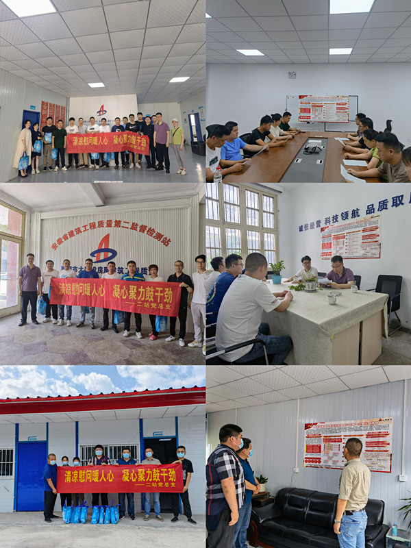 在宣讲现场,二站两级党组织班子成员领学宣讲了建工控股第一次党代会精神,并以规范管理、检测质量、安全生产等重点工作为切入点,组织大家围绕党代会精神说感受、提意见、谈发展,力求讲实际不浅俗、讲理论不空洞,将党代会绘就的蓝图根植于思想深处,不折不扣推动党代会精神入脑入心、落地生根。慰问中,二站两级党组织班子成员详细了解了一线员工的生活状况以及现场项目工作情况,对大家不畏高温、饱满激昂的工作作风给予了充分肯定,同时向他们表达了党组织的诚挚问候,发放了防疫物资和防暑降温用品。