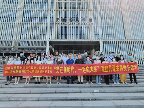 为深入学习贯彻习近平总书记关于社会主义文化建设重要论述,教育引导广大党员坚定文化自信,弘扬中华文化,9月6日上午,安徽省建筑科学研究设计院设计党支部、中国科学院合肥物质科学研究院固体物理研究所纳米材料党支部联合组织双方支部党员近50人赴安徽省美术馆开展“美在新时代,一起向未来”联建共建主题党日活动。