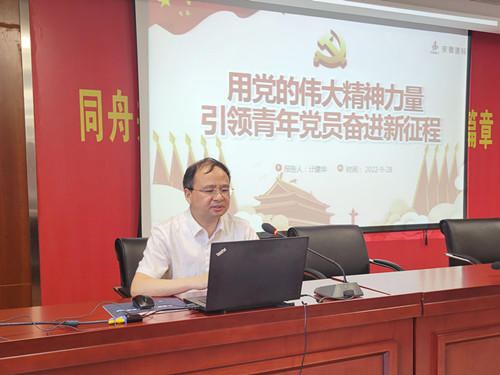 计建华结合个人近期学习《习近平谈治国理政》第四卷的心得体会,作了题为《用党的伟大精神力量引领青年党员奋进新征程》的专题党课报告。他从引领青年党员坚持真理、坚守理想,践行初心,担当使命,不怕牺牲、英勇奋斗,对党忠诚、不负人民等四个方面,带领支部党员重温了党的百年历史发展脉络,并号召全体党员要提振志气、骨气、底气,在全面建设社会主义现代化国家新征程上接续奋斗、勇毅前行,永远把伟大建党精神继承下去、发扬光大。