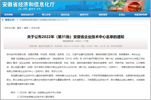 近日,从安徽省经信厅传来喜讯,我院成功通过“安徽省企业技术中心”认定。