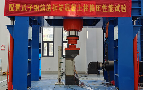 近日,重点实验室顺利完成“配置爪子钢筋的混凝土柱偏压性能试验”。该试验由同济大学委托,依托项目为国家自然科学基金“网格配筋混凝土结构抗剪机理研究(No:51178335)”,利用10000kN多功能结构试验系统对4个牛腿柱试件进行偏压性能试验。