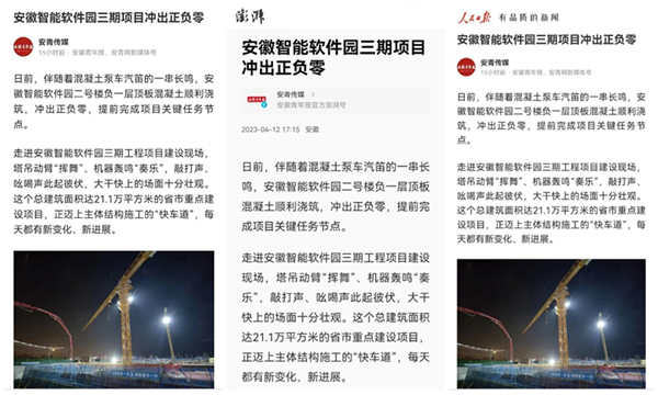 媒体聚焦 | 多家媒体报道安徽智能软件园三期项目冲出“正负零”——安徽建科助力蜀经开发展建设