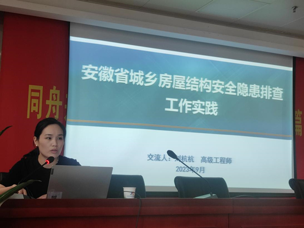 作为《安徽省城乡房屋结构安全隐患排查技术导则》(以下简称“《导则》”)的主要编制人,刘杭杭从近年来房屋倒塌典型案例事故调查报告入手,结合我省城乡既有房屋的特点,分别从《导则》编制的背景、排查技术要点、排查结果运用等方面进行重点解读,并对部省级关于房屋安全政策文件进行了分享交流。