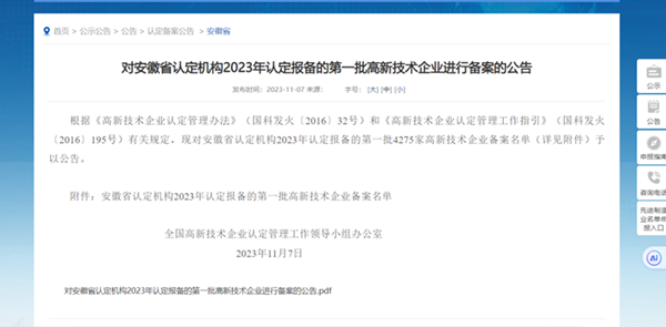 近日,由全国高新技术企业认定管理工作领导小组办公室发布的《对安徽省认定机构2023年认定报备的第一批高新技术企业进行备案的公告》中,安徽建科城乡设计院成功上榜,获批“高新技术企业”认定,正式迈入国家高新技术企业行列。