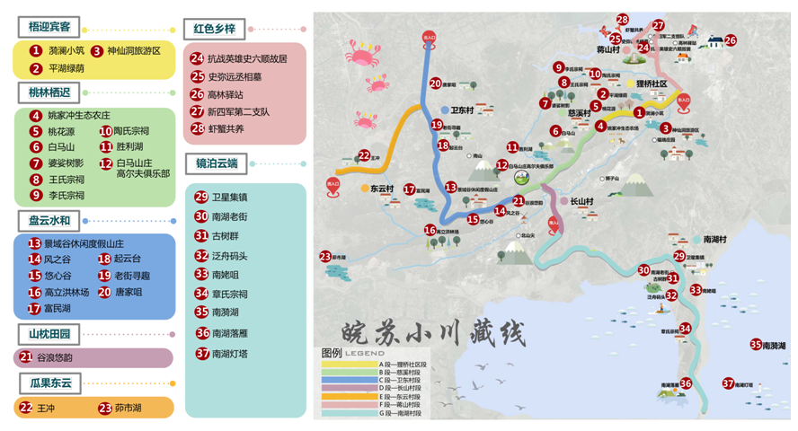 该规划从面域出发,“圩线”沿北部圩区缓缓南下,经固城湖、戚家村大桥、唐家咀,一直到水阳大桥与“山线”交汇;“山线”以南部现有山路为脉络,经白马休闲会所、景城山庄、古窑址群,一直到水阳大桥。“山线”、“圩线”沿途经多个村庄,规划打造自然村节点整治,提升村庄品质,丰富狸桥内涵。总体思路以“环境整治—美丽乡村—美丽经济—幸福生活”为规划路径,依托狸桥镇现有美丽乡村示范点,串点成线,拓线扩面,集中连片提升美丽中心村建设,推进区域性农村人居环境整治,推动生产生活生态“三生”同步,一二三产“三产”融合、农文旅“三位”一体、宜居宜业宜游“三宜”协同,打造“一兴三美,山水画廊”狸桥镇美丽乡村示范片区。