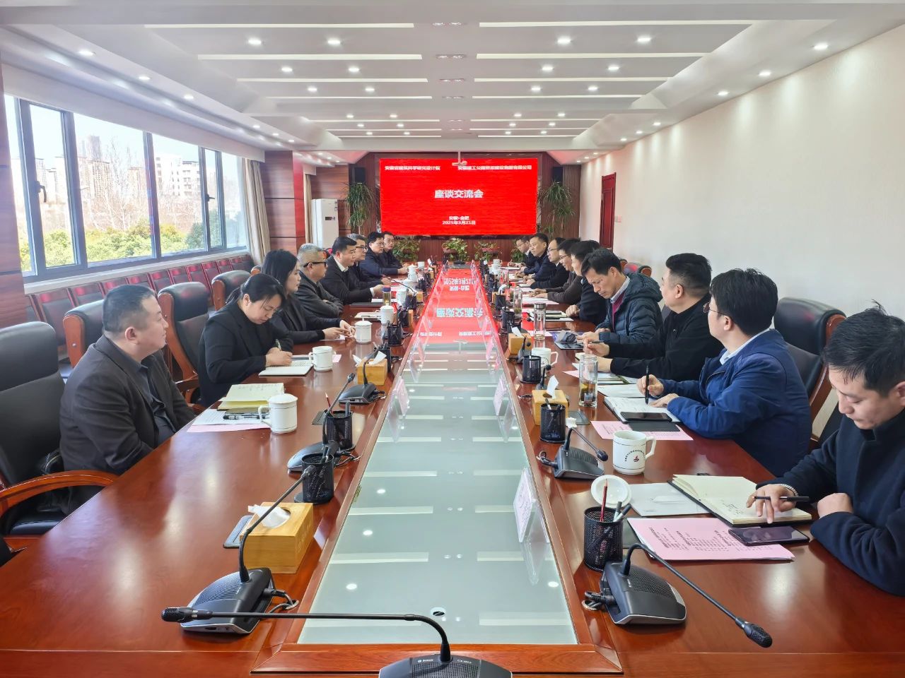 3月21日下午,安徽建科党委副书记、院长刘春雷率队拜访安徽建工公路桥梁建设集团有限公司(以下简称建工路桥),建工路桥党委副书记、总经理周世明热情接待并举行工作交流座谈。