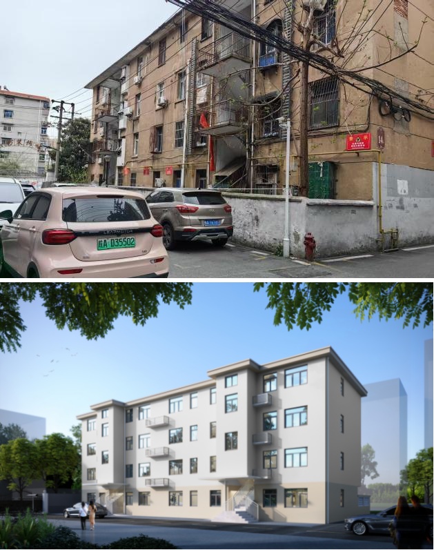 明光巷14号1栋房屋建成年代久远,经专业机构鉴定为D级危房,严重危及居民的居住安全,16户业主对于解危的诉求极为迫切。我院接受设计委托后,立即组建专项设计团队,多次深入现场对房屋结构展开勘察,并记录业主的居住习惯。结合《合肥市城区危险住房处置暂行办法》的规定,针对传统建筑工期冗长、现场安全隐患众多、后期装修限制较大等弊端,最终决定引入装配式技术,以“保障安全、尊重产权、便民利民”为核心准则,定制翻建设计方案。